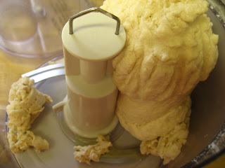 3. Let the dough rest for 2 minutes, then process for 30 sec. longer. If after 30 seconds, the dough is sticky and clings to the blade, add the remaining 1/4 flour 1 TBS at a time as needed. (I noticed that I didn't need to add the extra flour).