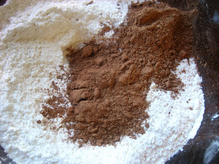 My Variation: Reduce the sugar to 10 TBS and add a heaping 1/2 cup grated bittersweet chocolate to the flour mixture. OR to make my mistake add 1/2 cup of cocoa to the flour mixture and reduce the sugar to 10 TBS!