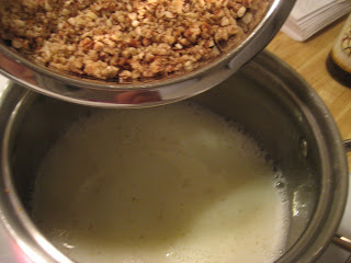 2. Add walnuts and keep stirring every so often... until thickened (10-15 minutes)