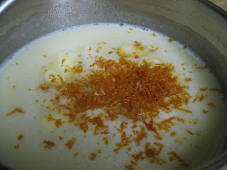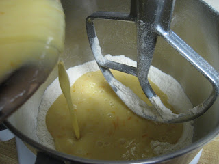 4. Add beaten eggs and blend to incorporate. Add flavorings lemon/orange zest, rum/vanilla.