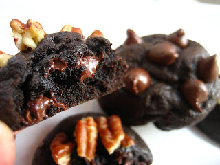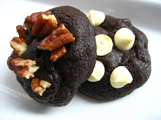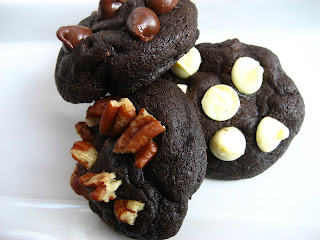 This is one amazing CHOCOLATY cookie! I just had to share it with you. The neat part...it's made from scratch! No box mix, and it's just as easy to make. It really couldn't be any easier. The recipe is from AllRecipes of all places...love that site. You can adjust amount of servings, in case you don't want to make the whole batch. I cut mine in half. It is one great recipe to have on hand.... I hope I never lose it. I should write it down somewhere, in case blogger crashes on me:) Seriously, if you love chocolate and cookies, you will probably like this cookie. Its chocolaty, chewy, and fudgy. Sort of like a brownie. Oh, did I say it was chocolaty?:) Can't stress that enough... Definitely NOT for the fainthearted.